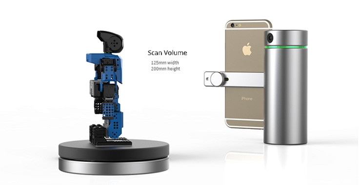 别看eora 3D扫描仪长得没有什么特色,它的每一道工艺可都是比较细致的,误差控制在50μm之内。圆柱体表面均采用阳很氧化膜覆盖,通过防反射膜的玻璃透镜,eora 3D的扫描精度达到了前所未有的100 微米,误差正负250微米。它所创建的模型支持达800万个顶点,而且扫面结果是以彩色的形式在手机上同步显示。